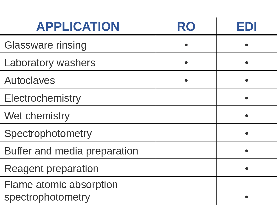 When larger quantities of RO water are required, the RADIX system is a multifunctional solution for different applications. Depending on the model, the RO configuration can produce up to 250 L of RO water.